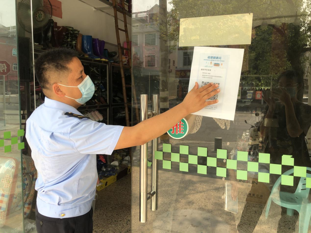 为打好疫情防控持久战,漳州长泰区市场监管局以业务为矛,以责任做盾,聚焦重点行业,紧盯重点人群,冲锋防控一线筑起“疫情防控墙”,主动应对,以快制快,全面守护国泰“闽”安。 加足“码”力:向全区企业、个体工商户经营者编发手机“场所码”申领提醒短信25000余条;各市场监管所全员出动,深入各类市场主体,督导各乡镇落实申领张贴“场所码”完成情况,并指导未完成申领张贴“场所码”的市场主体负责人现场申领,同时督促商户落实扫码。目前,共督导3次,合计抽查1648家,申领并张贴“场所码”的完成率已由第一次的62.64%上升至90.82%。