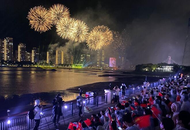 福建举办焰火晚会和灯光秀