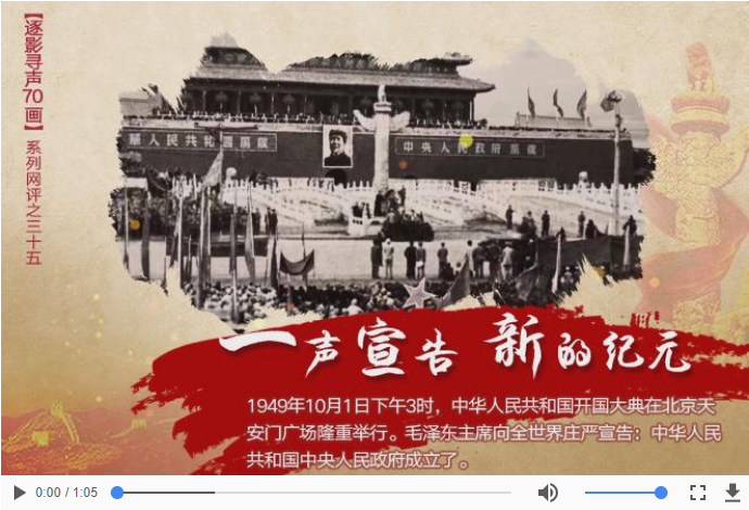 70年前的今天,同样在天安门城楼,毛泽东同志向世界庄严宣告了新中国的诞生,中国人民从此站起来了,中华民族从此开辟了一个新的历史纪元。
