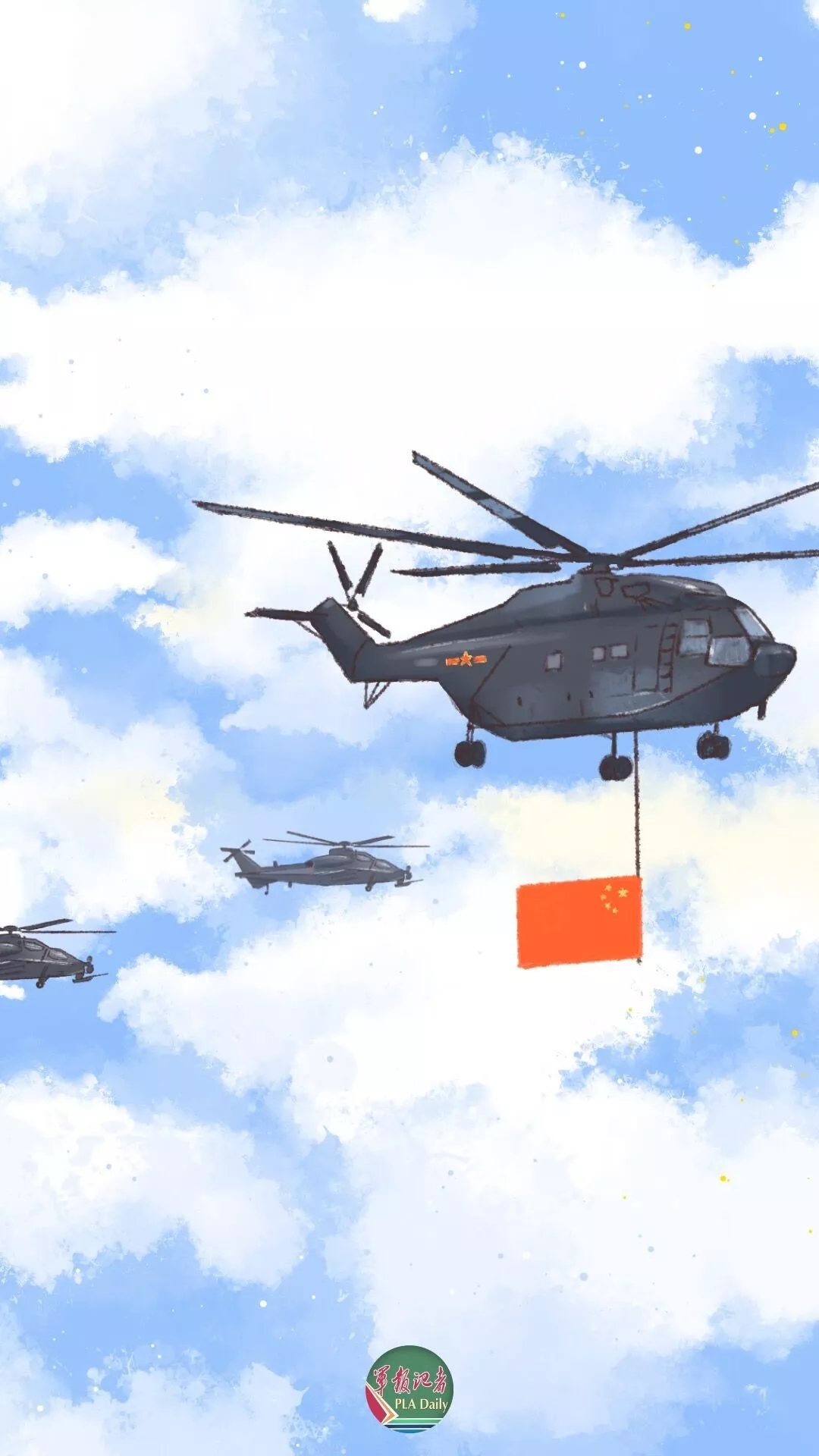 看了那么多国庆70周年阅兵炫酷的现场大图 今天,军报记者编辑部送给大家一组 纯手绘受阅空中梯队漫画 话不多说,一起来看 👇👇👇 空中护旗梯队