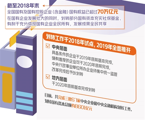 为何要划转—— 弥补缺口共享国企发展成果 财政部部长刘昆在会上介绍了这项改革的背景:1997年,我国建立统账结合的企业职工基本养老保险制度时规定,制度建立前企业已退休人员不需缴纳养老保险费,按原待遇支付办法发放基本养老金;已参加工作的人员,制度建立前的连续工龄作为视同缴费年限,与实际缴费年限合并计发基本养老金。 “这一制度安排,一方面降低了企业经营成本,扩大了企业资本积累;另一方面也形成了一定的企业职工基本养老保险基金缺口。对于这部分历史遗留的基金缺口,如果通过增加税收、提高养老金缴费率的方式解决,实际上是将负债转移给下一代人,会产生代际间不公平。”刘昆说,通过划转部分国有资本的方式,弥补因视同缴费年限政策形成的基本养老保险基金缺口,既具有合理性,也符合客观实际。 根据全国国有企业决算数据,截至2018年末,全国国有及国有控股企业(含金融)国有权益已超过70万亿元。“在国有企业发展壮大的同时,划转部分国有资本充实社保基金,有利于充分体现国有企业全民所有,发展成果全民共享。”刘昆表示。 进行到哪一步—— 中央企业划转已具规模,地方企业加速推进 根据财政部、人力资源社会保障部、国资委、税务总局、证监会9月10日联合印发的《关于全面推开划转部分国有资本充实社保基金工作的通知》,划转工作于2019年全面推开。中央层面,具备条件的企业于2019年底前基本完成,确有难度的企业可于2020年底前完成,中央行政事业单位所办企业待集中统一监管改革完成后予以划转;地方层面,于2020年底前基本完成划转。 目前划转情况如何呢?经济日报-中国经济网记者从此次会议上获悉:经国务院批准,2018年开展了划转试点工作。其中,中央层面,首先在中国联通等3家中央管理企业,中国再保险等2家中央金融机构开展划转试点。 试点完成后,财政部、人力资源社会保障部、国资委进一步加大划转工作力度,并按照国务院常务会议要求,又分两批对50家中央管理企业和12家中央金融机构实施了划转。目前,共完成三批67家中央企业和中央金融机构划转工作,划转国有资本总额约8601亿元。其中,财政部履行出资人职责的中央金融机构划转工作已基本完成。 在地方层面,2018年浙江、云南两省也报经国务院批准开展了划转试点工作,截至2018年底,两省试点工作基本完成。浙江省选择40家企业试点,划转国有资本158亿元;云南省选择13家省属企业试点,划转国有资本185亿元。 除试点省份外,其他省份也开展了划转前期准备工作,为下一步实施划转奠定了基础。如辽宁、吉林等25个省份对本省国有企业情况进行了全面摸排;广西、贵州等21个省份已起草了划转工作实施方案;四川、新疆等4个省份的划转工作实施方案已印发;内蒙古、安徽等9个省份已经成立或选定了划转承接主体等。 “划转试点工作的开展,积累了经验,取得了成效。同时,由于划转涉及面广,企业情况复杂,实施中也陆续反映出一些需要进一步规范和明确的事项。为此,财政部会同人力资源社会保障部、国资委、税务总局、证监会等部门,对试点中发现的问题进行了收集整理,逐一研究提出解决措施,形成了《关于划转部分国有资本充实社保基金有关事项的操作办法》。”刘昆介绍,《操作办法》解决的核心事项主要是两方面,一是到底划哪些、具体怎么划;二是划转后的管理和配套政策。《操作办法》的印发为下一步全面推开划转工作提供了有力支撑和指引。 下一步怎么走—— 扎实推进加强沟通,及时解决疑难问题 刘昆表示:“此次划转,主要是将符合条件的企业的10%国有股权划转至相关承接主体,既不改变国有股权性质,也不改变现行国有资产管理体制。因此,在实施中需要把握的核心内容主要有4方面:一是要准确界定划转范围和划转对象;二是明确和细化划转操作程序;三是合理选择确定划转承接主体;四是准确界定划转承接主体的权利和义务。” 会议提出,与中央企业相比,地方企业情况更为复杂,各省(区、市)人民政府要高度重视划转工作的艰巨性和复杂性,建议省里成立由有关负责同志牵头的领导小组,结合本省实际抓紧制定划转工作实施方案。同时,加强组织领导,压实部门责任,协调解决重大事项,督促指导划转工作。 人力资源社会保障部副部长游钧在会上说,要把划转工作落细落实,当务之急就是地方要抓紧制定出台落实方案和具体实施细则。要加大力度、加快进度配合相关部门深入调查研究,认真评估测算,科学合理制定划转计划和方案,明确关键环节具体要求,确保划转工作有章可循,责任落实到位。 国务院国有资产监督管理委员会副秘书长赵世堂表示,此次划转将进一步提升国有资本补充社保基金的规模。划转后,国有企业每年通过股权分红为社保基金提供稳定的资金来源,将使全国人民更好地享有国有企业的发展成果。与此同时,股权划转后,国有企业的发展将直接关系到社保基金的资金来源,全国人民也会因此更加关注国有企业,从而为国有企业改革发展提供更好的外部环境。 “全面完成划转工作需要群策群力。各地区、各部门不仅要发挥内在合力,更要及时与财政部等相关部门沟通,积极反馈工作开展情况,行之有效的做法经验,遇到的困难问题和有关意见建议等。财政部也要会同有关部门,深入开展调查研究,跟踪工作进展,研