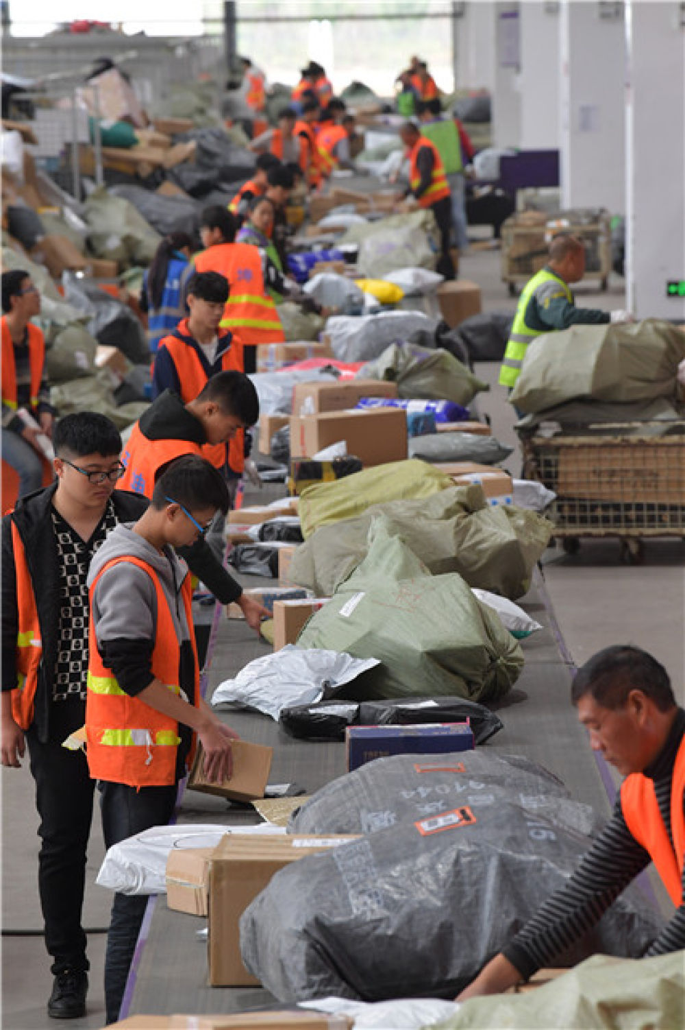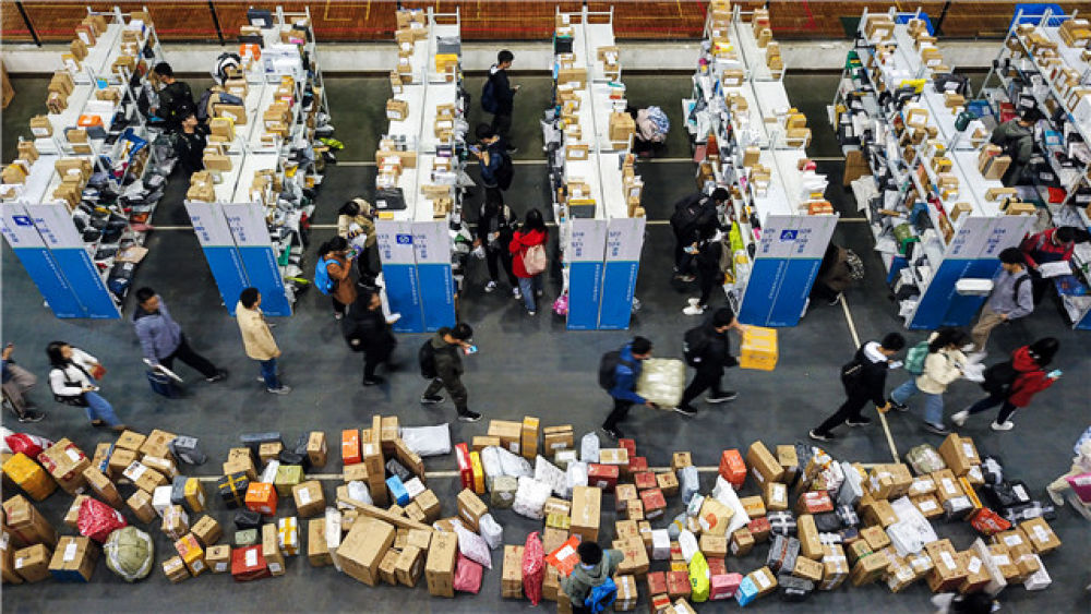 南京航空航天大学师生在校园临时快递取件点领取快递(2018年11月13日摄)。 为应对“双十一”大量校园快递包裹,南京航空航天大学在原“快递超市”的基础上,将学校体育中心室内网球场搭建为临时快递取件点,方便在校师生取件。新华社记者 李博 摄 国家邮政局局长马军胜介绍,2015年,快递小哥人均处理包裹量不到1万件。2019年,这个数字是1.69万件。这意味着快递业的劳动生产率5年内提高了70%。 越来越多的乡村百姓也在加入“买买买”行列——农村快递网点覆盖率达到95.22%,依托邮政网络,即使是最偏远的农村也可辗转通达快递。 飞速发展的物流技术、越织越密的物流网络让快递“爆仓”成为历史。“双11”也从最初下单后焦灼等待,到隔日达、当天达、1小时达……“人在家中坐,货从八方来”成为每个中国消费者看得见、摸得着的“小确幸”。 技术带来的改变不只是物流。 从过去支付仅靠手动插拔U盾完成,到如今“摇摇头”“点点手”就能秒级支付……技术更迭带来支付手段的革新,让人们享受着更便捷、无感的支付体验。 蚂蚁金服首席技术官程立回忆,2010年推出快捷支付技术,让用户在支付时省去网银跳转,插U盾等繁琐步骤,支付成功率从60%大幅提升到了95%,不仅极大改善了“双11”的支付体验,也为中国移动支付的发展奠定了基础。 如今,移动支付早已融入日常,变成线上商业模式不可或缺的一环,支付过程中产生的大量数据也成为构建社会信用体系的重要来源。 大数据定向推送、区块链技术应用于商品防伪溯源、AI智能客服……技术“超进化”创造了全新的购物体验,让中国消费者买得更舒心。 理念之变,尽显中国市场“磁石”吸引力 如今的“双11”,已然是一场线上与线下“合奏”的盛大交响曲。 “在中国,为中国。”走进第二届进博会,不少外国参展商打出扎根中国的标语。感光变色隐形眼镜、“量肤定制”面膜、可监控体温的“望远镜”……越来越多来自全球的创意商品和品质尖货“跑”进中国,或与实体卖场签约,或携手电商平台线上开售。