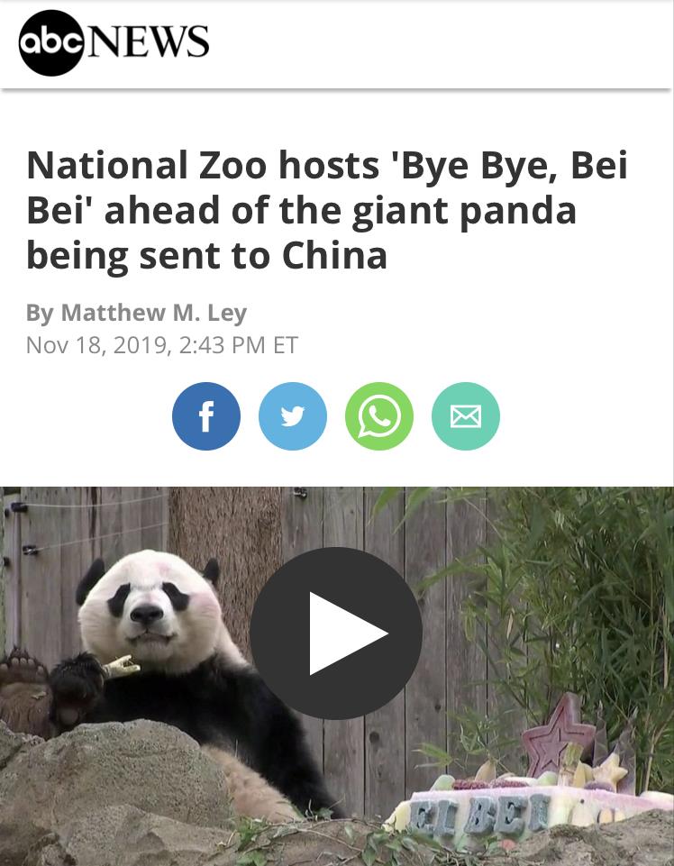 美国《华盛顿邮报》报道截图 当天,美国《华盛顿邮报》发表报道称,贝贝返回中国引发广泛关注。 报道称,自1972年以来,中国熊猫一直深受美国人欢迎和关注,不曾间断过。此次贝贝回国,动物园还举办丰富的欢送活动,其中就包括为熊猫贝贝写明信片、制作友谊手链。 报道还指出,美国国家动物园的有关负责人表示,将贝贝送走之后,他们将重点关注2020年中美之间有关熊猫的协议。 “贝贝是我们动物保护取得成功的案例之一。”美国国家动物园的发言人之一任帕梅拉·贝克马森(Pamela Baker-Masson)表示,要做到保护动物,我们还有很多工作要做,我们希望继续推动大熊猫项目。 此次贝贝回到中国后就会加入熊猫繁殖项目。美国美国广播公司(ABC)的报道引用美国国家动物园和生态保护机构负责人史蒂夫·蒙福尔特的声明表明了对熊猫贝贝的不舍与期待。