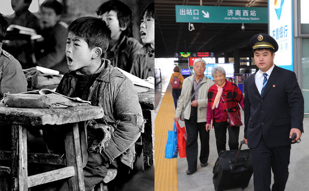 图为:曾经的“大鼻涕”男孩成长为新时代的高铁青年