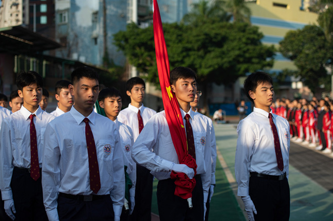 2019年11月18日,澳门濠江中学举行升国旗仪式。 五星红旗,穿越数十年历史沧桑,承载着四百多年的血脉深情,生动诠释着澳门人民对于回归祖国母亲怀抱的渴望。 澳门著名学者吴志良曾经在一篇《别问我是谁》的短文中写道:“回归前,澳门治安不靖且声名远扬,许多澳门人在外地被问起身份时,不无尴尬,有时还不得不左右而言。”澳门回归以后,澳门居民“大大加强了对澳门的文化认同和归属感”,被人问起时,“非但不必再冒充其他地方的人,越来越多的澳门人还从‘我从澳门来’改为‘我是澳门人’来作自我介绍”。 文化认同是一个国家民族拥有强大凝聚力和社会和谐的基础。澳门的文化认同既反映了澳门人的文化归属感和对澳门发展前途的信心,同时也是澳门从法律意义上的回归到文化意义上回归的现实折射。 澳门自古就是中国领土,尽管经历了葡萄牙长期的殖民统治,中华文化仍然是澳门文化的根基。从古老的妈祖信仰、节庆民俗,再到如今与内地频繁的文化交流和相同的历史、地理教材,四百多年来,澳门与内地的文化关联从未间断。 今年适逢新中国成立70周年,澳门回归20周年,澳门街坊总会颐骏中心长者义工组的30位老人给习近平主席写了一封信。在信中,他们讲述了澳门回归后的发展变化,表达了深为自己是中国人而骄傲的心情和传承好爱国爱澳精神的决心。 颐骏中心书法老师马腾很幸运地成为这封信的代笔,他表示:“祖国好,澳门更好,祖国强,澳门更强,所以要更加努力去做好。” 这正如习近平主席在澳门回归15周年之际说的那句话:“澳门同胞对国家的认同感和向心力不断加强,血浓于水的民族感情不断升华。” 家和万事兴。那高高飘扬在澳门上空的五星红旗,始终将澳门与祖国紧紧相连。 心和:荷风送暖化人心 2019年一个夏日的傍晚,澳门现存最古老的西式剧院——岗顶剧院中,一场传统民族音乐会《南来的大雁北去的风》正在举行。曲目有《西喇木伦河》、河南民歌《编花篮》、广东音乐《娱乐升平》《彩云追月》《旱天雷》等。这些地方色彩浓郁的中国传统乐曲为盛夏的澳门带来一股凉爽的风。 这其中很多作品由澳门与内地艺术家联袂演出。 艺以融情,文以通心。内地与澳门各具特色的艺术形式最终交融于博大精深的中华文明。 几个月后,一场名为“融”的澳门艺术家作品特展在中国美术馆开幕。