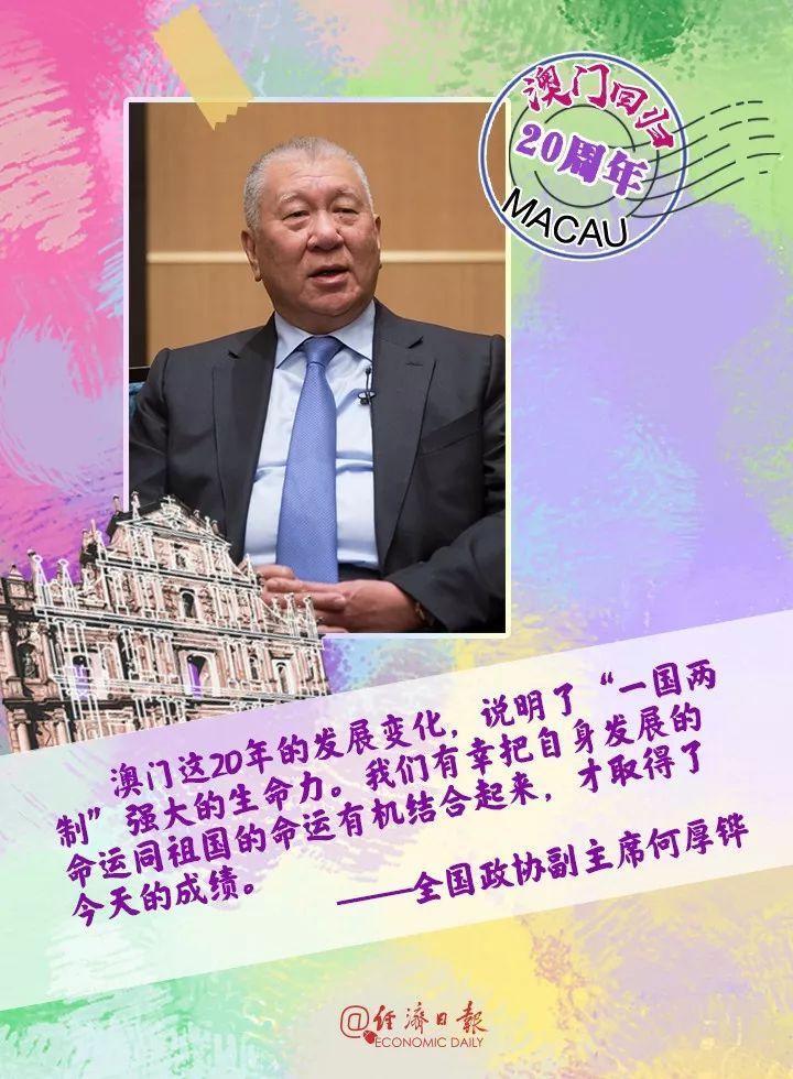 “粤港澳大湾区是给予澳门人的一个千载难逢的机会。”何厚铧认为,湾区的制度设计,使澳门回归以来积累起来的多方面优势得以发挥,并有助于打通小城面对多年的发展瓶颈。“澳门最大的优势,就是在‘一国两制’框架下的一个自由港,有自己的货币政策,金融、经贸活动都在自由港政策下展开,是非常有活力的经济体。”他表示,把握好“一国两制”的制度优势,结合国家的需要发挥澳门所长,这将是今后特区政府和澳门社会各界共同努力的方向。 20年风雨,20年成长 20年磨练,20年辉煌 回归祖国20年 踏入成年礼的澳门 正脚踏实地 把握“国家所需”和“澳门所长”结合点 继续向行 |