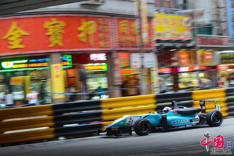 澳门格兰披治大赛车三级方程式赛赛车比赛掠影 张金加 摄 赛车经过赛道背景为澳门的闹市街道。澳门所举行的格兰披治赛车体坛赛事,是世界最古老的街道车赛,也是世界上唯一同时举办汽车比赛和摩托车比赛的街道赛事。首届举行于1954年10月30日-31日。澳门格兰披治大赛车现已是澳门体坛和车坛一年一度盛事,赛事在东望洋跑道上进行。跑道全长6.2公里,主要是以现有的闹市街道作赛,以多弯、狭窄等赛道因素著名于世。现定于每年11月第三个星期四至星期日举行。 |