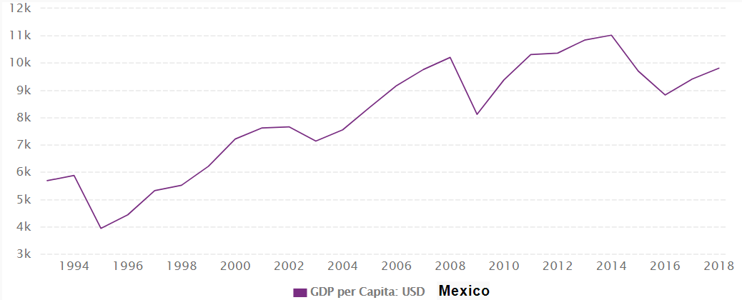 巴西也是7个城市有地铁,分别为圣保罗、里约热内卢、贝洛奥里藏特、巴西利亚、阿雷格里港、累西腓、萨尔瓦多。其中,圣保罗是巴西最大城市,人口约1000万,地铁线路共6条,总长97公里;里约热内卢地铁有3条线路,总长58公里;巴西利亚地铁总长约41公里。巴西地铁没有俄罗斯那么大规模,历史积累差一些。 墨西哥首都墨西哥城有12条地铁线路,总长226公里,在美洲仅次于纽约;第三大城市蒙特雷有2条地铁线,总长32公里。十年前墨西哥的人均地铁长度高于中国,如今早就被中国超过。 土耳其5个城市有地铁,分别为伊斯坦布尔、安卡拉、伊兹梅尔、布尔萨、亚达那。其中,伊斯坦布尔有6条线,总长115公里,另外还有3条线路在建;首都安卡拉有5条线,总长64公里。按人均地铁长度来算,土耳其跟中国水平相当,基建也是土耳其的优势产业,不可小觑。 马来西亚只有首都吉隆坡有地铁,主要是建在地面的快速轨道交通系统,约150公里。 从人均地铁长度来看,目前中国还没有明显超过俄、巴、墨等国,但是再过五年,中国的人均地铁长度就能跟这些国家拉开较大差距,网状地铁将成为中国大城市的标配。 总体来看,中国基建能力虽是优势,但还有较大发展空间,人均水平还不够好。但中国强在持续发力,再过十年不仅能远远甩开俄、巴、墨等国,估计也能全面接近发达国家水平。 人均GDP1万美元的生活怎么样? 再来说说国民收入及生活水平。 收入 2018年中国人均可支配收入为28228元,其中,收入较高的城镇居民为39251元。也就是说,中国人均月收入为2352元,城镇居民人均月收入为3270元。就算按2个工作人口养1个人来算,全国劳动人口人均月收入约3500元,城镇劳动人口月收入约4900元。 这看起来并不算多,很多人也觉得这与人均GDP超1万美元该有的水平似乎存在差距。 出现这种错觉是因为,中国拥有全球规模最大、最具成长性的中等收入群体,据测算,2017年中国三口之家年收入在10万元-50万元之间的有1.4亿个家庭,大约4亿人,有购车、购房、闲暇旅游的能力,这个群体还在不断增加。此外,中国很多人收入变动较大,增收速度快,统计起来代表性不足。 俄、巴、墨等国的居民在收入方面是什么状况呢? 2017年俄罗斯官方公布的数据显示,俄劳动人口平均月收入为39100卢布(按近期汇率折合人民币约4400元);南美侨报网的一项调查显示,2018年巴西人均月收入为2330巴西雷亚尔(按近期汇率折合人民币约3900元);2017年,墨西哥人均月收入约为3000元人民币,贫富分化很大,很多穷人甚至靠贩毒集团提供的福利生活;土耳其人均月收入相对较高,近几年在四五千人民币的水平,但土耳其女性就业率低,所以家庭收入不高;马来西亚劳动人口平均月收入也在4000元人民币左右的水平,但女性同样就业率低,主要是男性负担家庭。 总体来看,在人均收入方面,中国与俄、巴、墨等国差别并不大。各国也都有一些社会保障体系,大幅减小了低收入人群的负担,比如中国的医疗保险覆盖率从2004年的不足10%提升到近年来的98%。 住房 2018年,中国城镇人均住房建筑面积达39平方米,农村为47.3平方米。这在世界上算是较高水平,欧洲人均住房面积约为30平方米;美国为70平方米,世界最高;日本约为20平方米。 俄罗斯人均国土面积很大,人均住房面积为25平方米,是苏联刚解体时的2倍。苏联的“赫鲁晓夫楼”规模极其宏大,建楼速度快,一举让四分之一的国民住进新居,但这种筒子楼单个面积并不大,各家还共用厨房。 苏联解体后,俄罗斯开始拆掉这种旧楼,改建更现代的套房。近年来,俄罗斯建筑投资占总投资额一半以上。总体来说,俄罗斯住房相对不错,俄罗斯不少城市居民还有郊外的渡假小木屋,但这类不能算住房。 巴西的住房问题要严重多了,最突出的是贫民窟问题,巴西最大城市圣保罗有1500多个贫民窟,居住了160多万人;墨西哥城也有世界著名的贫民窟,城东的曲达德内扎贫民窟有120万人,规模居世界第二;马来西亚有建在海上的贫民窟。 相比而言,土耳其人均住房面积为28平方米,贫民窟问题要小得多。 中国没有贫民窟的问题,中国的住房问题主要是一些城市房价较高,跟俄巴墨等国相比显然不在一个层面。 而且中国房地产问题也有退路,一线城市的房子买不起,可以退去二三四线城市,这样问题就小得多。很多打工者在一二线城市赚钱,根本不指望在这里买房安家,而是选择家乡的县城。 2018年中国商品房销售面积为17亿平方米,每年人均房产面积能增加1平方米,居住条件会越来越好,由此带动的人均GDP增长也还有很大发展空间。 食品 在食品消费方面,中国跟俄巴墨等国差距不大,在发展中国家中都处于相对较好的水平,即便跟一些发达国家相比,也并没有拉开太多差距。 比如肉类消费,中国肉类产量早在2010年就处于相当高的水平,以后每年肉类消费都超过8000万吨,人均肉类消费在60公斤左右,但总体趋势逐渐放缓,很大程度上是国民出于健康需要,对肉类需求有所减少。