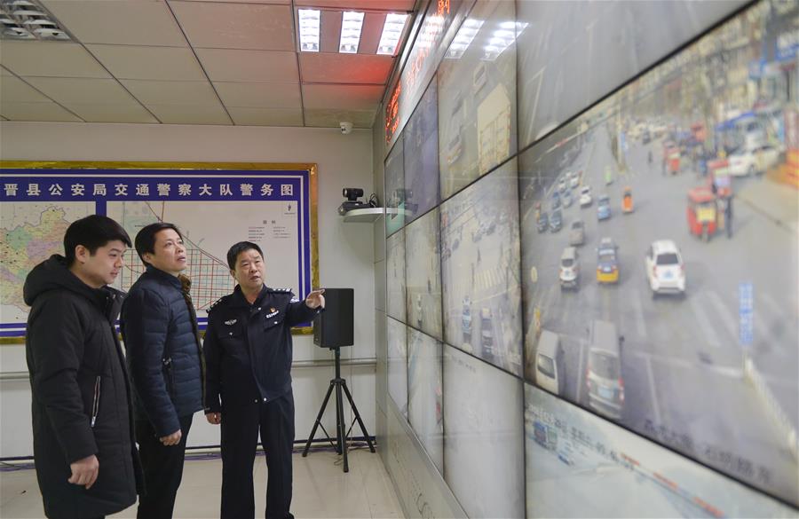 河北省宁晋县纪检干部借助公安机关交通监控系统,实时查看公车运行轨迹,严查公车私用问题(2018年12月29日摄)。 新华社记者 牟宇 摄