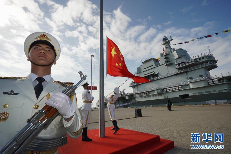 2019年12月17日,我国第一艘国产航空母舰山东舰在海南三亚某军港交付海军。经中央军委批准,我国第一艘国产航母命名为“中国人民解放军海军山东舰”,舷号为“17”。这是交接入列仪式现场。 新华社记者 李刚 摄