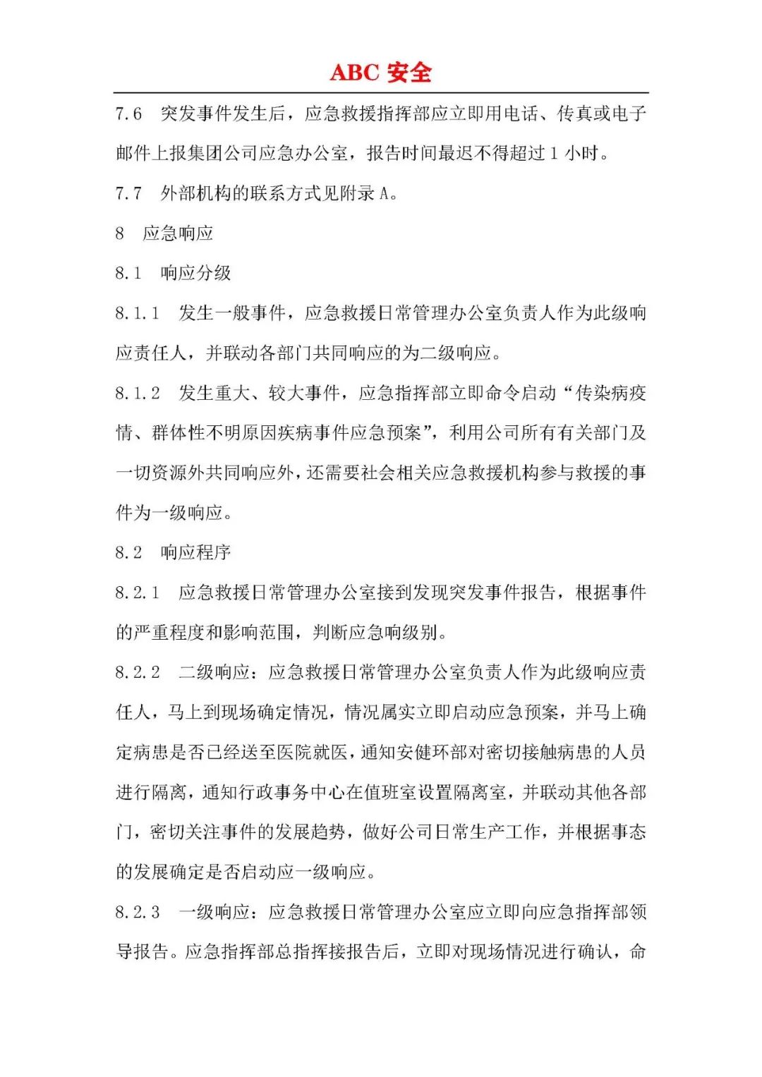 企业传染病疫情事件应急预案