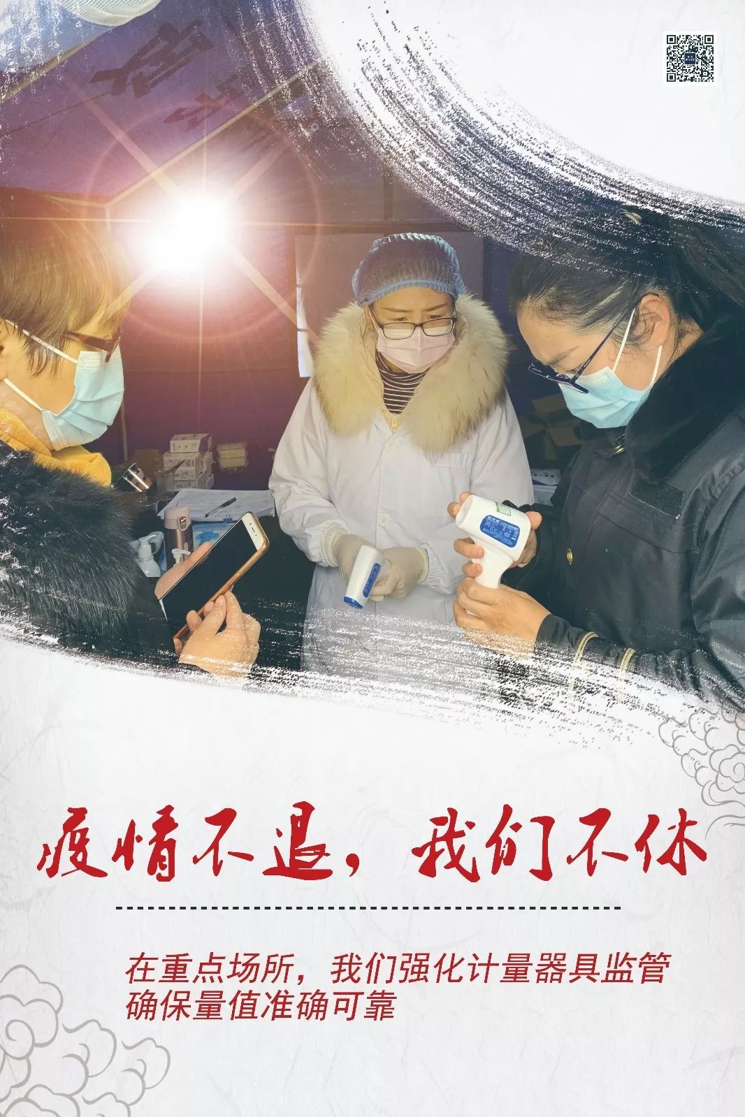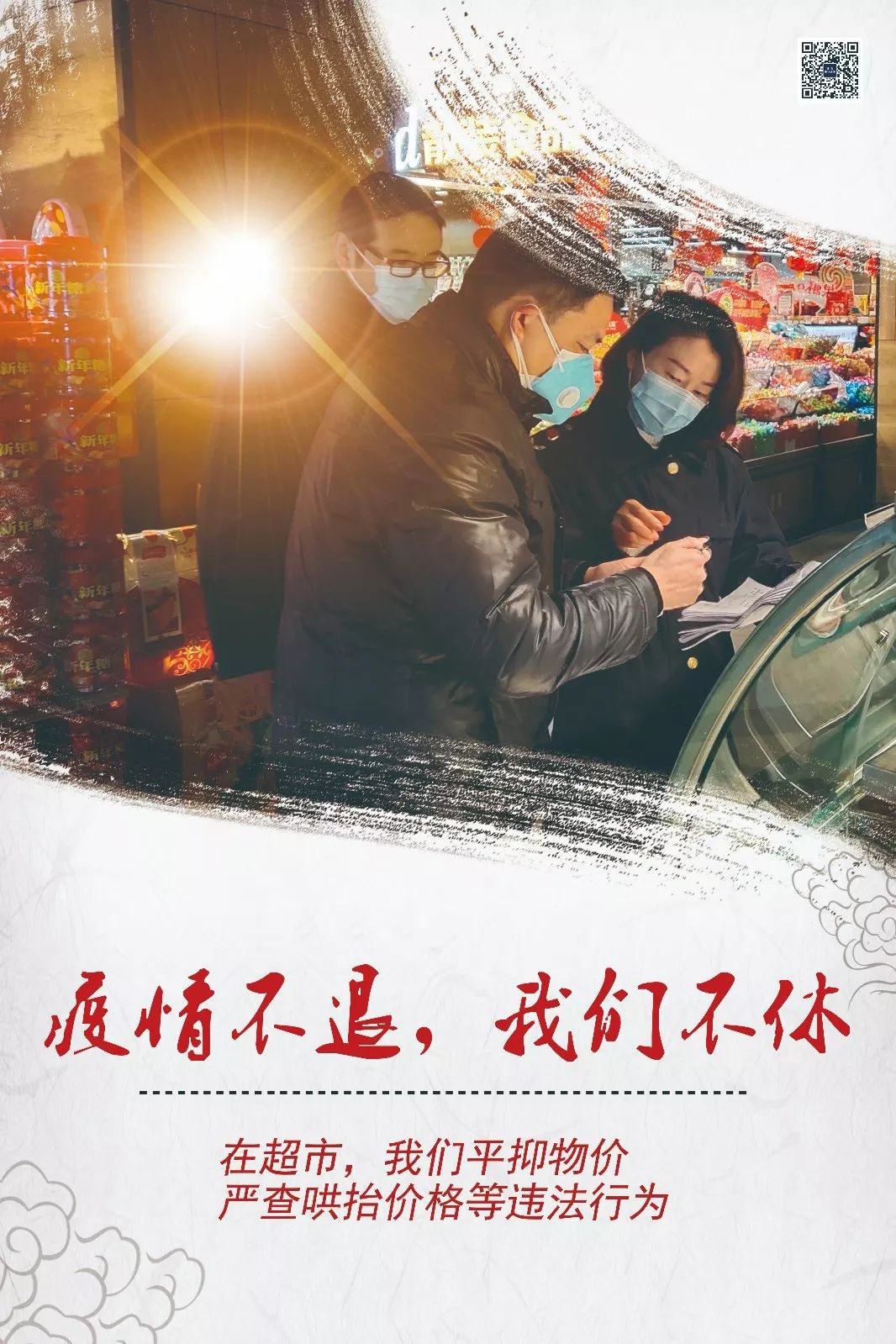 ▲在超市检查的“认真男孩” 从腊月二十七一直到现在,胡朋一直坚守在工作岗位上,以办公室的沙发为床,以工作台为餐桌,算下来已经14天没有回过家了。都说婴儿时期的宝宝一天一个模样,不知道小家伙又有哪些变化,深夜整理完案卷,胡朋总是伴着对孩子的思念入睡。 从市场巡查到防疫物资转运,再到协助社区排查外地来宜人员,处处都留有他的身影。针对辖区药店口罩、药品、消毒商品涨价,胡朋和同事们一起对辖区药店、超市开展针对性检查,腊月二十七当天晚上就检查出2起药店哄抬物价的行为,大年初三发出了全市第一张针对哄抬价格的行政处罚决定书,通过他和同事们的严格执法,商家哄抬防疫商品价格的行为得到了有效遏制。 宜昌市伍家岗区:抗“疫”展英姿,保质稳价红妆忙 有这样一个小团队,她们出入在药店、医疗机构的门口,她们有着和白衣天使一样的美丽容颜,也有着抗疫情共克时艰的决心。 她们,是伍家岗区市场监管局药械化监管股的田桂岚和她的战友们! 1月21日起,伍家岗区市场监管局药械化监管股就开始督促企业开展疫情防控宣传,张贴劝导标语,提醒患者及时就医,同时配备测温仪为顾客测量体温,要求其发现体温超过37.3℃的及时上报所属社区。