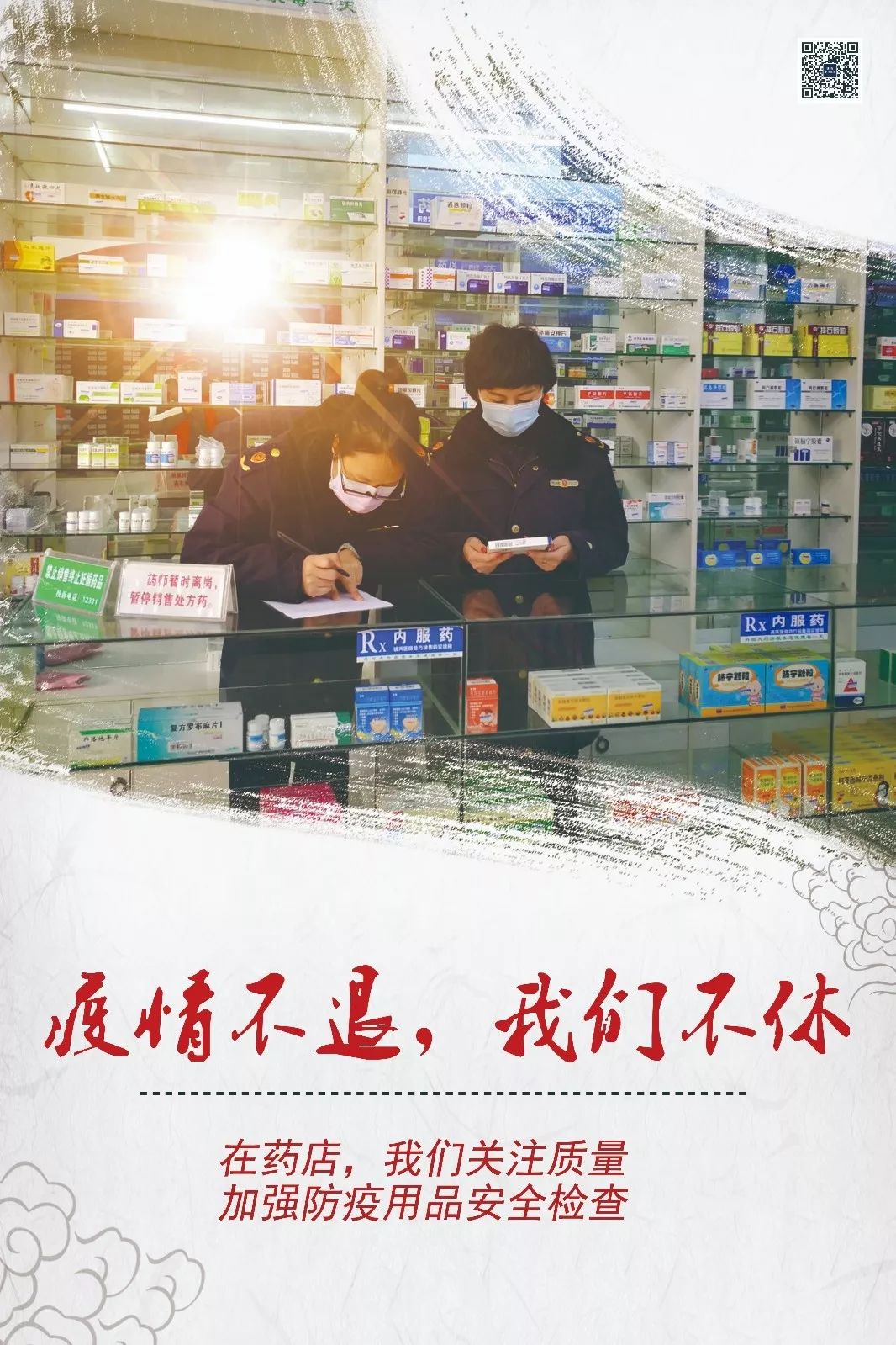1月30日,为进一步督促药械经营企业履行主体责任,执法人员向辖区所有药械经营企业发放《关于新型冠状病毒感染的肺炎疫情防控告知书》。 为有效控制病毒的传播,督促药店在入口处采用桌子、柜台等工具将顾客隔离在门外,并为顾客做好服务工作。 1月30日起,市政府每日定量在药品零售企业门店投放平价口罩,市民凭身份证每人限量购买,执法人员对指定销售的连锁门店加强价格监查,严禁哄抬价格销售,并督促药店为顾客测量体温、提醒顾客在店外保持一定距离排队购买药械产品。 在监管的同时,及时倾听企业的声音,力所能及的帮助其解决困难。了解其人员到岗情况,联系疫情防控指挥部、市局,统计药店员工车牌号,做好药店工作人员返城上班的协调工作,保证药店正常营业。并联系药械批发企业积极组织货源,满足公众购买需求。