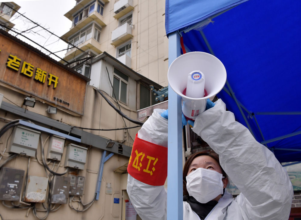 2月10日,下沉到德望社区的武汉市园林局职工杨丽青在调试播放防疫事项的扩音喇叭。新华社记者李贺摄 一周前,武汉市园林局职工杨丽青撇下两岁的儿子来到德望社区,戴起红袖标、拿着小喇叭,对进出人员测温、登记,当起社区楼栋“守门员”。由于家离社区30多公里,加上交通管制,杨丽青只能住在单位办公室,晚上睡沙发。 在下沉干部的帮助下,德望社区已排查出辖区的26例确诊和疑似患者,完成隔离收治。熊威说:“经过前段时间的持续爆发后,现在社区新增发热、疑似病例都在回落,疫情防控效果逐步体现出来了。”