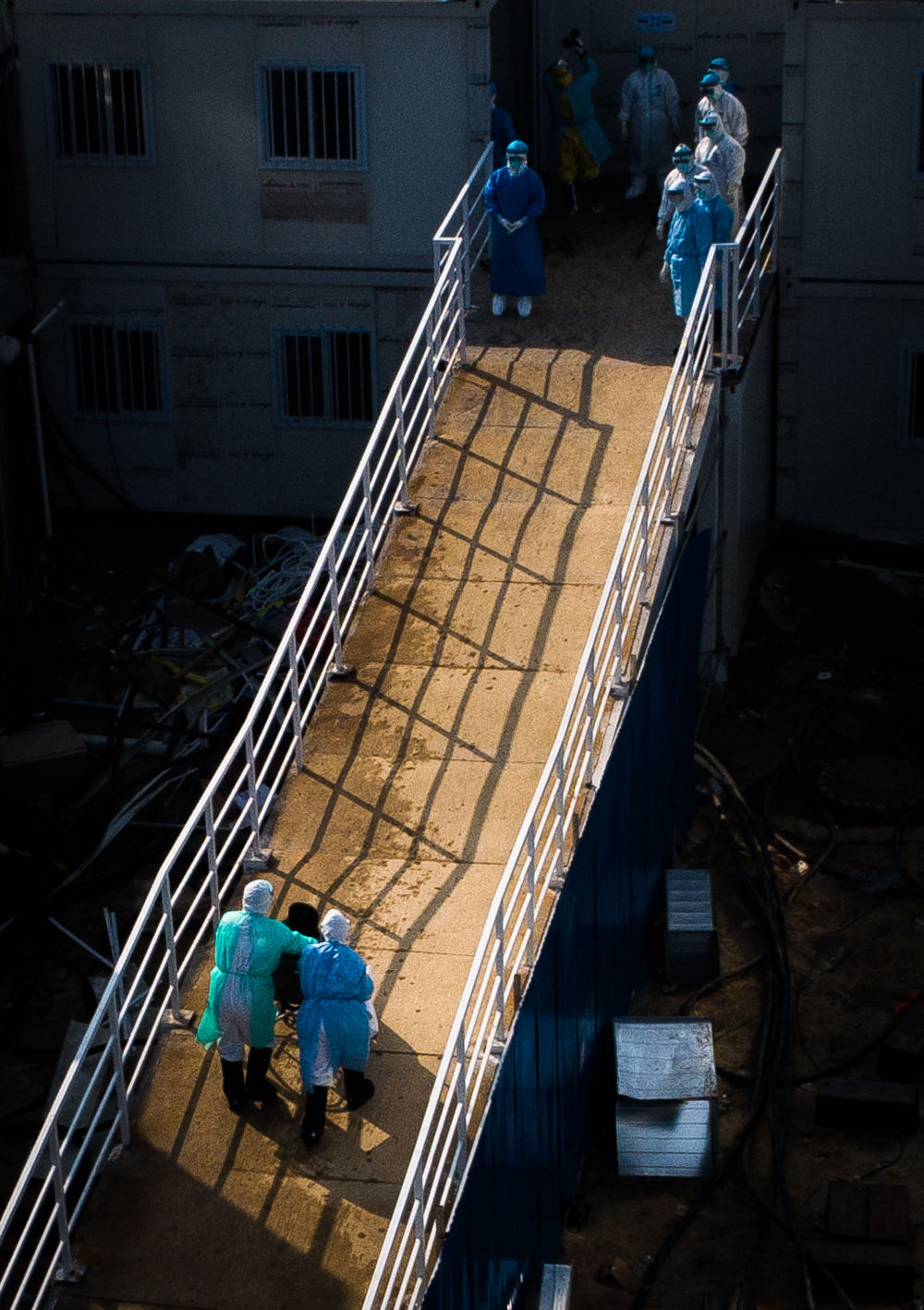 1月29日,在武汉金银潭医院,张定宇在去病房的路上。新华社记者 肖艺九 摄 隐瞒身患渐冻症的病情,顾不上照料被感染的妻子,始终坚守在疫情防控最前线,武汉市金银潭医院党委副书记、院长张定宇在与时间赛跑。 金银潭医院,最早集中收治新冠肺炎患者的医院,是这场抗“疫”之战最早打响的地方。 同事们说,平时上下楼必须抓紧扶手、慢慢挪步的张定宇,这些天里,“他拼的时候,我们跟不上他”。 “我必须跑得更快,才能从病毒手里抢回更多病人。” 张定宇脚步匆匆。 向险而行,还有更多“张定宇”让人们泪目。