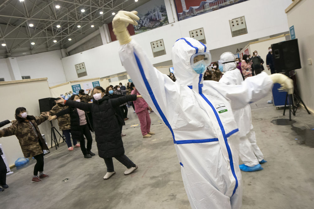 2月10日,在武汉客厅方舱医院,医护人员带领患者们跳舞。新华社记者 熊琦 摄 连日来,在方舱医院,在隔离点,甚至在新冠肺炎定点医院的隔离病房,人们看书、玩魔方、打太极拳,甚至跳起了欢快的广场舞。 “坚持下去,才有希望。我一定要好好配合,放松心态、合理锻炼,才有更好的治疗效果。”在一家方舱医院和病友们一起跳广场舞的何女士说。 在武汉“封城”的这20多天,留在城里的人们坚守岗位、守望相助,用自己的实际行动为疫情防控贡献力量。
