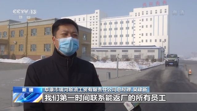 阜康市瑞河粮油工贸有限责任公司总经理 吴建新:第一时间联系能返厂的所有员工进行复工复产,在做好防护工作的同时,加足马力保障生产。 由于提前复工复产,企业也出现流动资金短缺、原粮供应不畅等问题,当地积极协调多部门开辟绿色通道,确保企业生产进入正轨。 在阿勒泰哈巴河县的新疆某制药有限公司,50多名生产工人正在加班加点。据了解,2月2日复工以来,企业加紧生产药品,保障供应的同时,还捐赠了60万元的药物发往新疆各地州用于疫情防控工作。 沈阳铁路局:提供运煤保障 确保居民供暖 眼下,北方还在供暖期内,为了全力保障居民供暖,中国铁路沈阳局集团有限公司在抓好站车疫情防控的同时,主动走访各大企业,为供暖企业提供运输保障。 中国铁路沈阳局集团有限公司货运营销中心副主任 卢永亮:一方面,我们与辽宁、吉林、内蒙古“两省一区”的69家电厂(供暖企业)保持24小时热线联系,随时掌握存煤和耗煤情况;另一方面,同当地政府一道,积极协调煤矿企业尽快复工复产,保证煤炭供应。 江苏徐州:科学调度 精准复工 江苏徐州在做好疫情防控工作的同时,还出台了21项措施,从减轻企业负担、稳定职工队伍、加大金融支持、强化精准服务四个方面,全力支持企业发展,为企业复工提供坚实保障。在江苏徐工重型机械有限公司的车间里,一道能够兼容18道工序、生产20多种产品的智能生产线正高速运转。这里1名工人可以控制10台机器,代替了大量的人工作业,智能化的操作减少了工人的聚集。