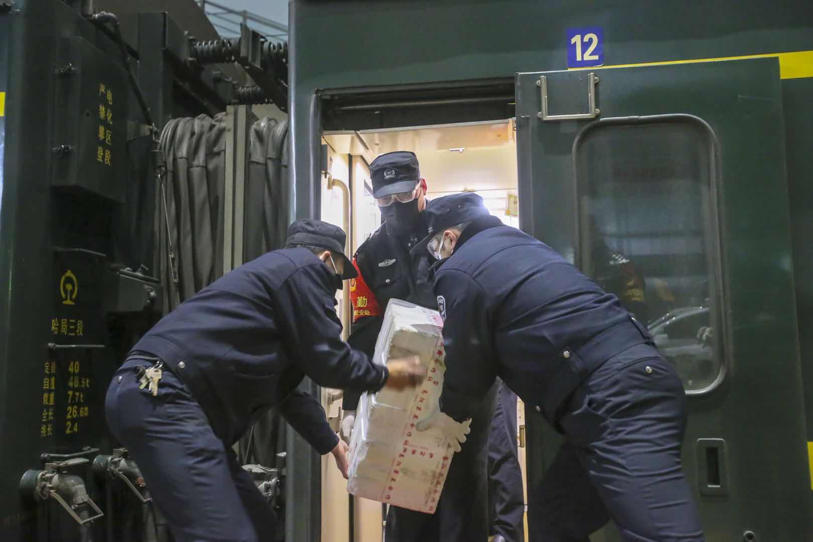 自1月23日离汉通道关闭,武汉铁路公安处部分铁路民警就承担起协助物资转运的工作。他们一直坚守一线,有的不敢回家,竭尽所能为疫情防控前方提供后备支援。 2月14日20时40分,Z235次旅客列车停靠武昌火车站站台,从沈阳运来的140余箱物资由此转运。武汉铁路公安处武昌车站派出所20名警力出动,争分夺秒转运物资,只为让防疫物资尽早投入抗“疫”工作之中。