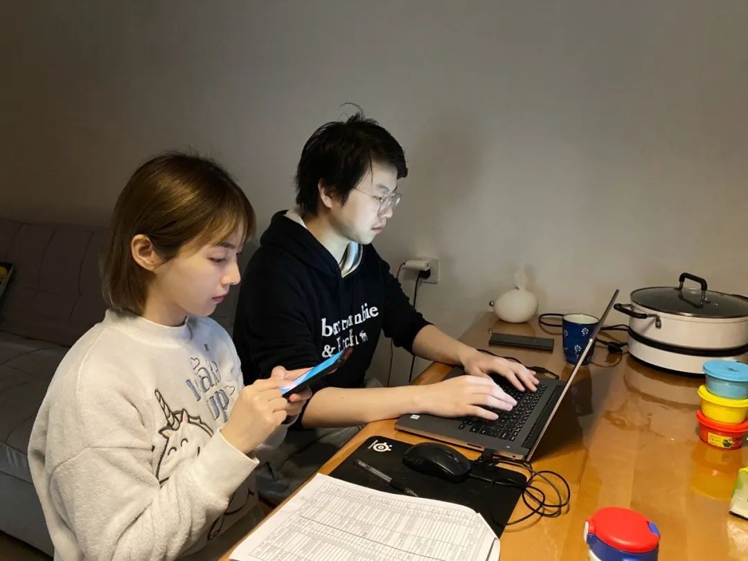志愿者刘梦雅和丈夫为小区居民设计订购图表 29岁的刘梦雅是一位青年创业者。疫情期间,她加入了联泰小树林青年志愿者服务队,为社区联系调用运送物资的小货车,还利用专业优势,为居民开发了线上团购小程序,方便居民下单订货。