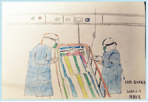 2020年2月9日,“援汉日历”第十四章。王彤主任和吴峥嵘医生正在查房,他们仔细查看病人的状况,认真记录每一位病人的身体情况,讨论治疗方案,谨慎地给出医嘱。此时他们认真的样子,格外迷人。