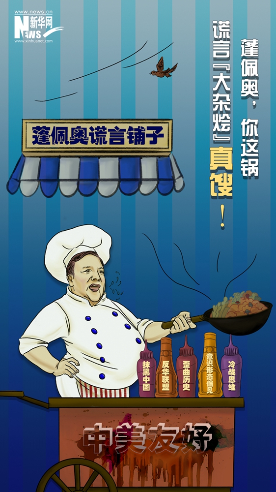 近日,美国国务卿蓬佩奥发表涉华政策演讲,恶毒攻击中国共产党和中国社会制度,鼓噪世界联合起来“改变中国”。通篇演讲罔顾事实、颠倒黑白,充斥着意识形态偏见和冷战思维的霉馊味,是一锅政治谎言的“大杂烩”。 这是一些美国政客针对中国,有计划进行的又一轮攻击和抹黑。谎言背后是疫情应对不力甩锅推责的政治算计,是对外示强扭转竞选颓势的党派私利,是打压孤立中国、维护美国绝对霸权的战略图谋。 谎言翻炒千遍还是谎言,在真相面前不攻自破。中国共产党得到人民群众的衷心拥护和坚定支持,党民关系无惧挑拨。坚持走中国特色社会主义道路是历史和人民的选择,也是实践证明的正确选择。美方改变不了中国,中国也无意挑战或取代美国。蓬佩奥堆砌谎言,挑动对华“新冷战”,完全是基于偏见的战略误判。 中美友好交往关系来之不易,凝聚了几代人的政治智慧和不懈努力,是对全世界的建设性贡献。蓬佩奥全盘否定中美关系,是对美国外交政策的“权力绑架”,是对历史和国家先驱者的亵渎,严重毒化中美关系。 今天早已不是挑动意识形态对立的年代,世界多极化潮流势不可挡。奉劝蓬佩奥们停止负面言行、勿拿谎言铺路。开历史倒车者不得人心,终将失道寡助。 总策划:刘加文 监制:夏小鹏 策划:徐倩 文案:李雪梅 编辑:刘小军 毕秋兰 漫画设计:刘娟 来源:部分文字综合新华社、人民日报 新华网海外传播中心制作 |