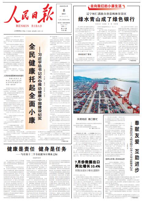 全民健康托起全面小康。从明年开始,我国将进入“十四五”时期,在全面建成小康社会基础上开启全面建设社会主义现代化国家新征程。在以习近平同志为核心的党中央坚强领导下,14亿中国人民满怀对美好生活的无限向往,阔步迈向中华民族伟大复兴!
