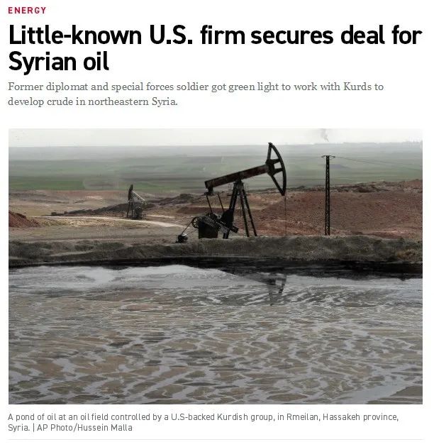 △《政治报》报道截图 报道还指出,美国政府对叙利亚石油市场实施了多项制裁,将矛头对准为叙利亚政府运销石油提供便利或资金支持的企业,这无疑体现出美国政府的私心:禁止别人染指叙利亚石油,却允许自己的企业独吞利益。