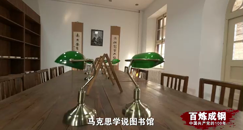 今天北京市沙滩后街55号院,就是一百多年前“亢慕义斋”的所在地。室内是根据原样重新修复的,正中悬挂的是马克思像,像的两边贴有一副对联,上联是“出研究室入监狱”,写的正是陈独秀的经历,下联是“南方兼有北方强”,这一句则出自李大钊。这小小的两间房其实就是马克思学说研究会的办公室和图书馆。
