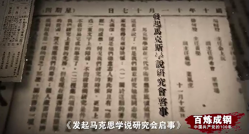 这是一份当年的北京大学日刊,上面登载了这样一则消息:《发起马克思学说研究会启事》,这则消息公开宣布了北京大学马克思学说研究会的存在。 《启事》里说,“该组织是以研究关于马克思学派的著述为目的。” 北京大学马克思学说研究会发起于1920年3月,它的发起人就是时任北京大学图书馆主任的李大钊。 1917年俄国十月革命的胜利,极大触动了黑暗中国的一批警醒者,李大钊就是其中之一。历史将记住这个喜欢留两撇黑胡子,戴一副圆框眼镜的中年人,他宛如一位撞钟人,撞响了中国共产主义运动黎明的晨钟。而成立这个研究会,就是要唤醒更多的年轻人。 当时的北大校长蔡元培非常支持这个研究会,他专门辟出北大西斋宿舍的两间房给研究会使用。