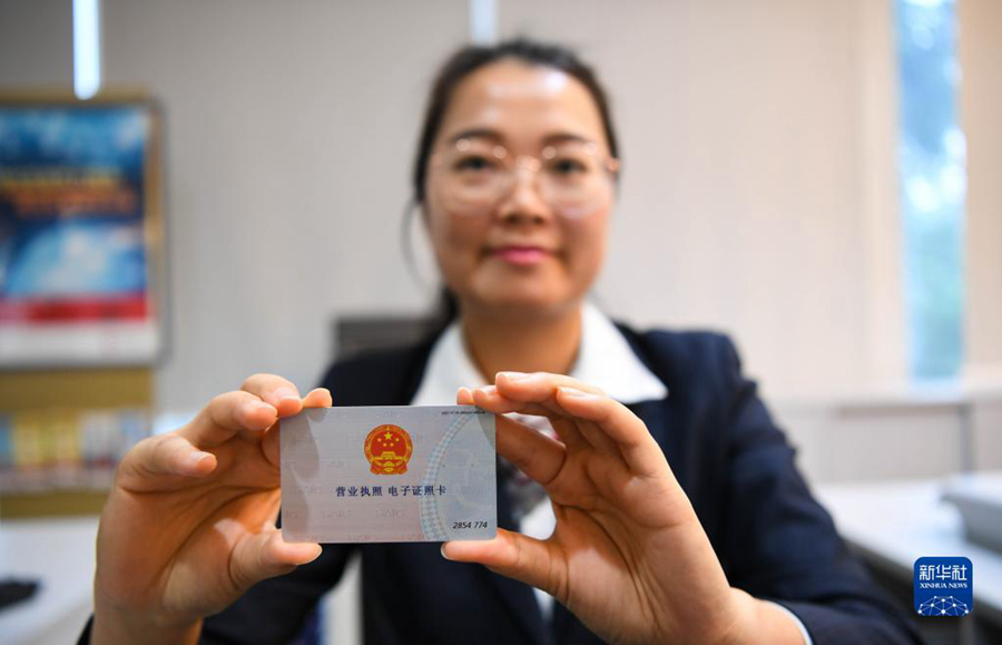 中国银行横琴分行工作人员展示商事主体电子证照银行卡(2018年11月15日摄)。新华社记者邓华摄