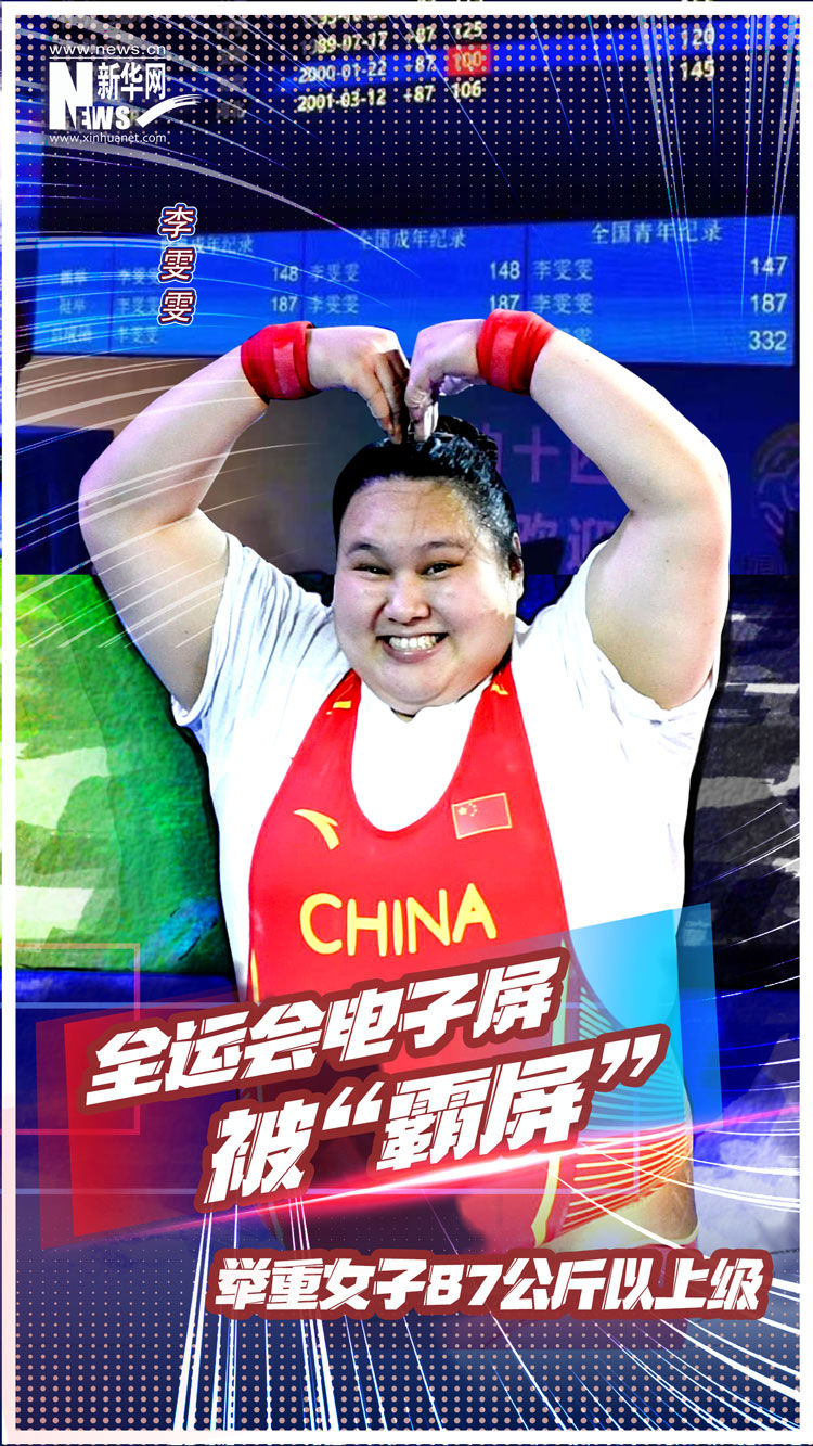 在19日第十四届全运会举重女子87公斤以上级比赛中,东京奥运会冠军李雯雯以总成绩320公斤获得冠军,比赛结束后,电子屏上出现了一幕:世界纪录、全国纪录共九项纪录保持者,全都是李雯雯。全运会电子屏就这样被李雯雯霸屏了。
