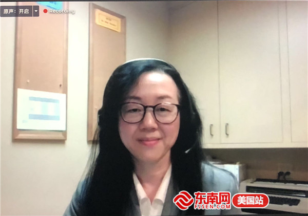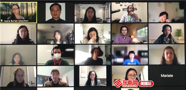 蒙特雷国际关系学院华裔学者张孟主持活动。(记者刘伟网上截屏)