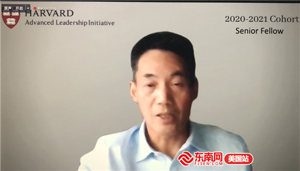 哈佛大学高级研究员许建明作《中国资本市场回顾与展望》主题演讲。(记者刘伟网上截图)