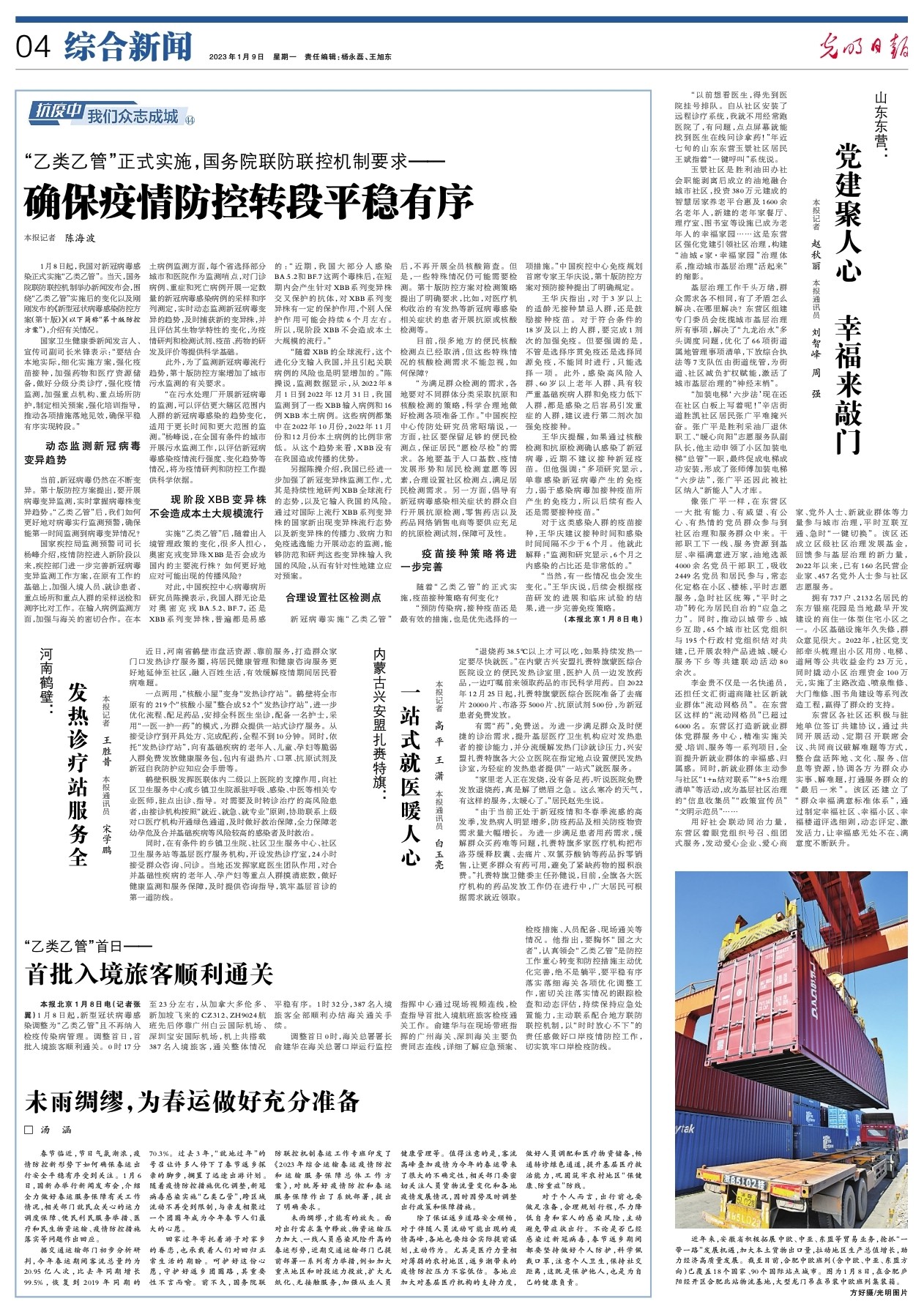 调整首日0时,海关总署署长俞建华在海关总署口岸运行监控指挥中心通过现场视频连线,检查指导首批入境航班旅客检疫通关工作。俞建华与在现场带班指挥的广州海关、深圳海关主要负责同志连线,详细了解应急预案、检疫措施、人员配备、现场通关等情况。他指出,要胸怀“国之大者”,认真领会“乙类乙管”是防控工作重心转变和防控措施主动优化完善,绝不是躺平,要平稳有序落实落细海关各项优化调整工作,密切关注落实情况的跟踪检查和动态评估,持续保持应急处置能力,主动联系配合地方联防联控机制,以“时时放心不下”的责任感做好口岸疫情防控工作,切实筑牢口岸检疫防线。