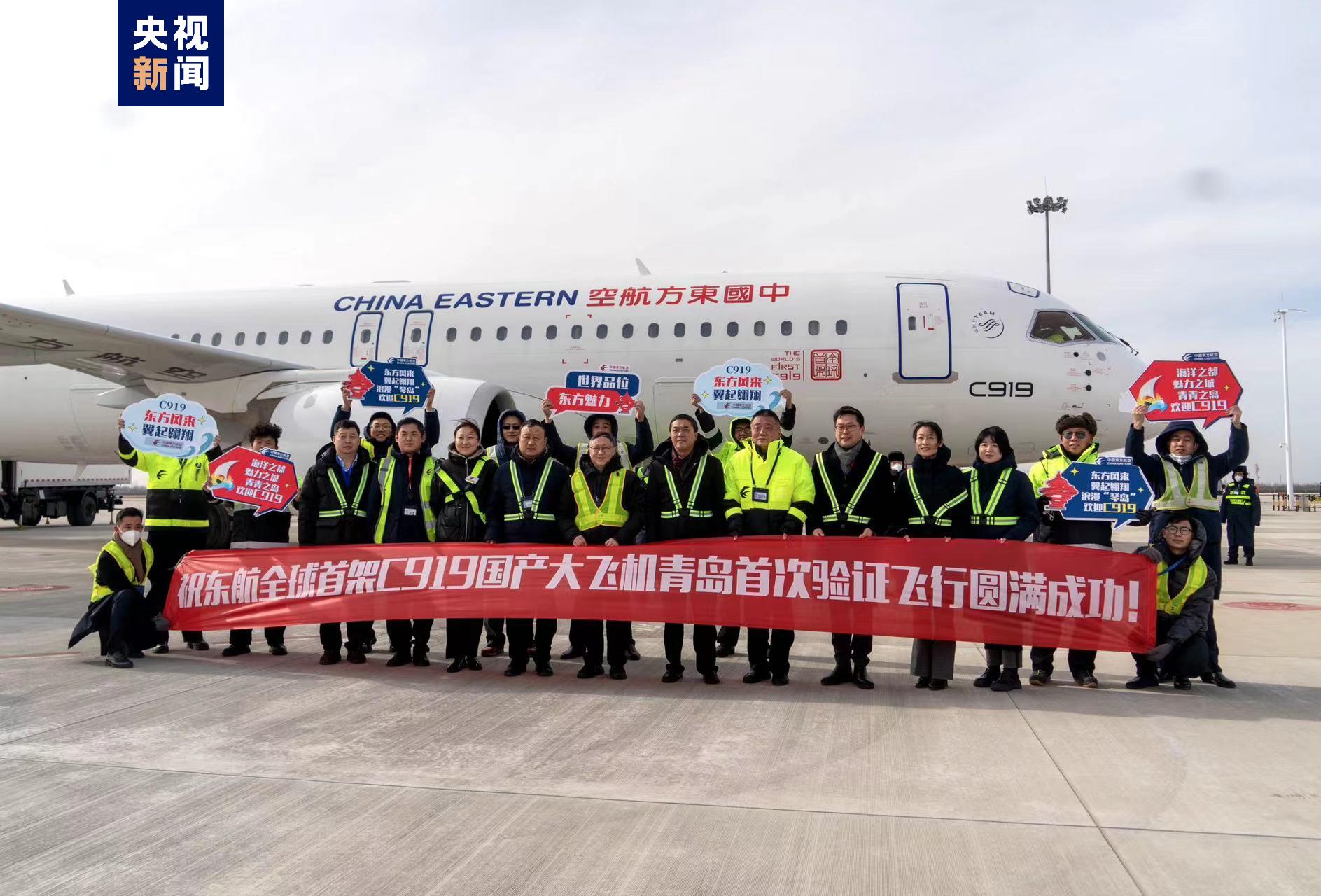 2022年12月9日,中国东方航空作为C919的全球首发用户,正式接收编号为B-919A的全球首架飞机,标志着国产大飞机事业从研发制造的“上半场”开始转入商业运营的“下半场”。2022年12月26日,东航C919飞机开始进行100小时验证飞行。C919飞机在飞抵青岛之前,已在上海、北京、成都、西安、海口等5个城市、6座机场密集开展验证飞行。后续还将继续前往济南、南昌、武汉、合肥、南京、太原等航点,继续开展验证飞行。