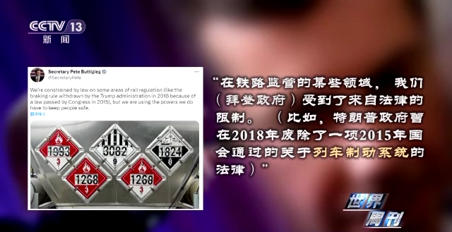 次日,2月14日,布蒂吉格在社交媒体上将脱轨事件的事故责任原因甩给了特朗普政府。