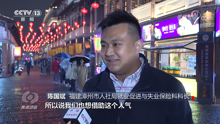 福建漳州市人社局就业促进与失业保险科科长陈国斌:“古城北广场在漳州是比较热闹的一个地方,我们也想借助这个人气来带动就业工作,为大家提供一个轻松、平缓、舒适的平台。我们做了一个调研,反馈出来的企业用工数总体跟往年相比增加5%到10%。”