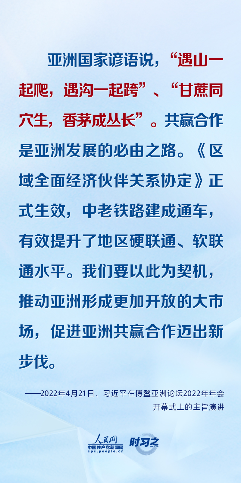 2013年以来,习近平主席5次在博鳌亚洲论坛年会上发表主旨演讲,旁征博引、妙语连珠,为共创亚洲和世界美好未来贡献了中国智慧。
