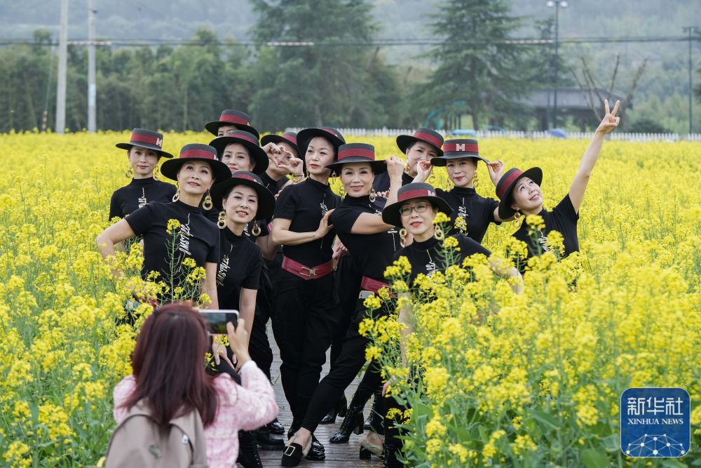 4月1日,游客在油菜花地里拍照留影。新华社记者 徐昱 摄