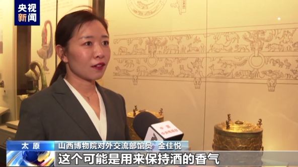 山西博物院对外交流部馆员 金佳悦:纹饰其实是非常典型的像草原风格的气息,但是它的造型又非常的浑圆厚实,又是非常典型的中原器型的风格。这件器物铸造年代是在西汉末年,正是我们历史上一个民族大融合的时期。在它的下边可能还配有一个盛放有木炭的托盘,一起来配套使用,来加热酒。它上面有一个非常厚重的盖子,这个可能是用来保持酒的香气和防止酒精挥发的,所以联想到我们今天在进行清明祭祖的时候,大家也会用酒来表达这样的一种追思遥寄。