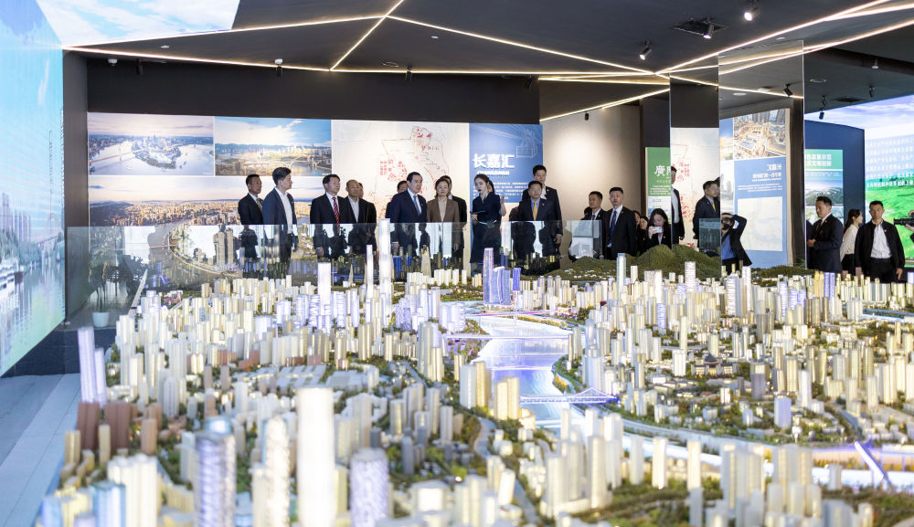 4月3日,马英九先生一行在重庆市参观重庆市规划展览馆。新华社记者 王承昊 摄