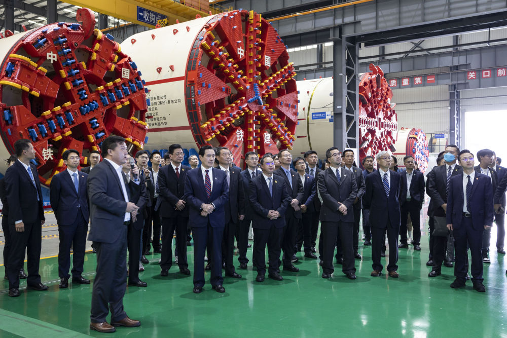 4月2日,在湖南省长沙市,马英九先生一行走进铁建重工的车间。新华社记者 陈键兴 摄