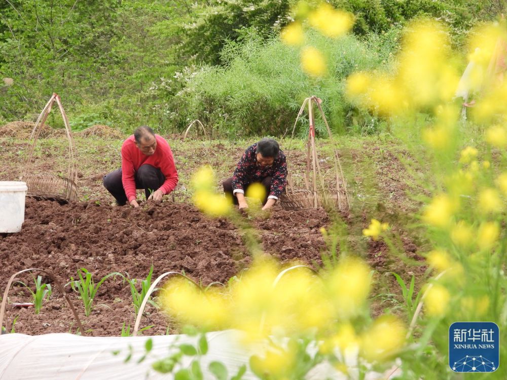 4月5日,村民在四川省达州市渠县合力镇双土社区移栽玉米秧苗。新华社发(邓良奎 摄)