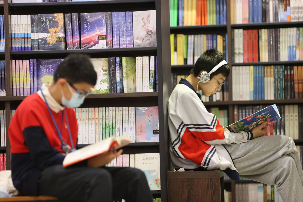 4月22日,学生在福建省厦门市思明区一家书城阅读书籍。新华社发(曾德猛 摄)