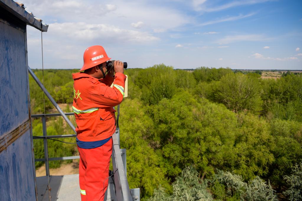 6月5日,临河区国营新华林场护林员在开展巡护工作。新华社记者 李志鹏 摄