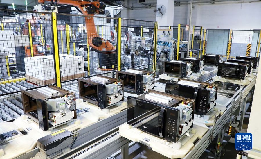 这是格兰仕微波炉总装车间。新华社记者刘宏宇 摄