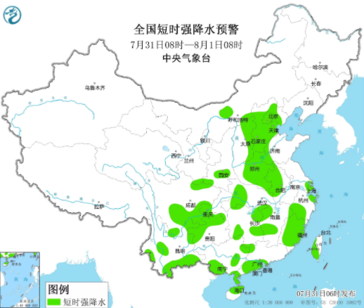 全国短时强降水预警