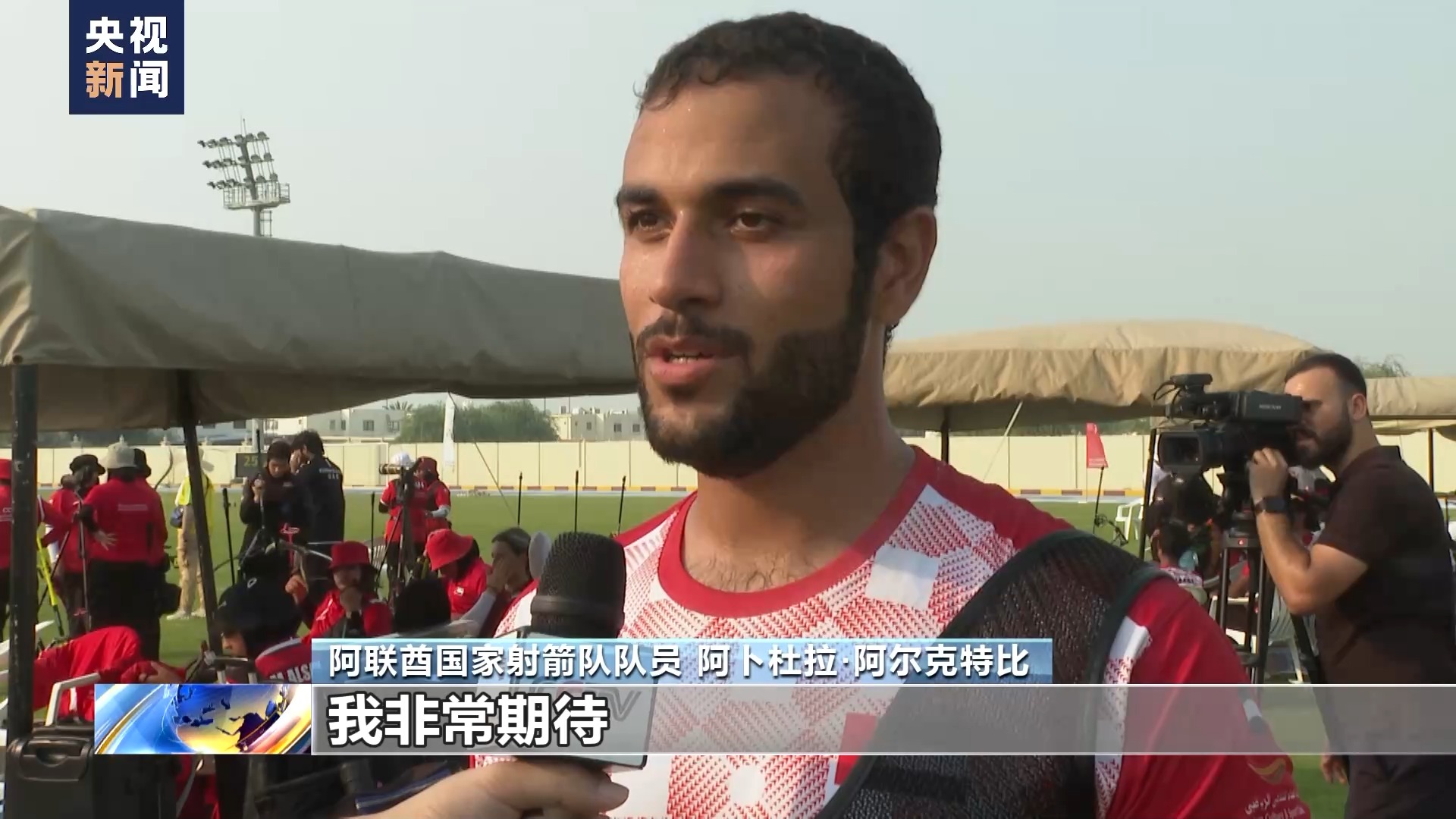 阿联酋国家射箭队队员 阿卜杜拉·阿尔克特比:这是我第一次去中国,我非常期待。我希望能拿到金牌,也希望有机会欣赏美景。祝亚运会圆满成功!