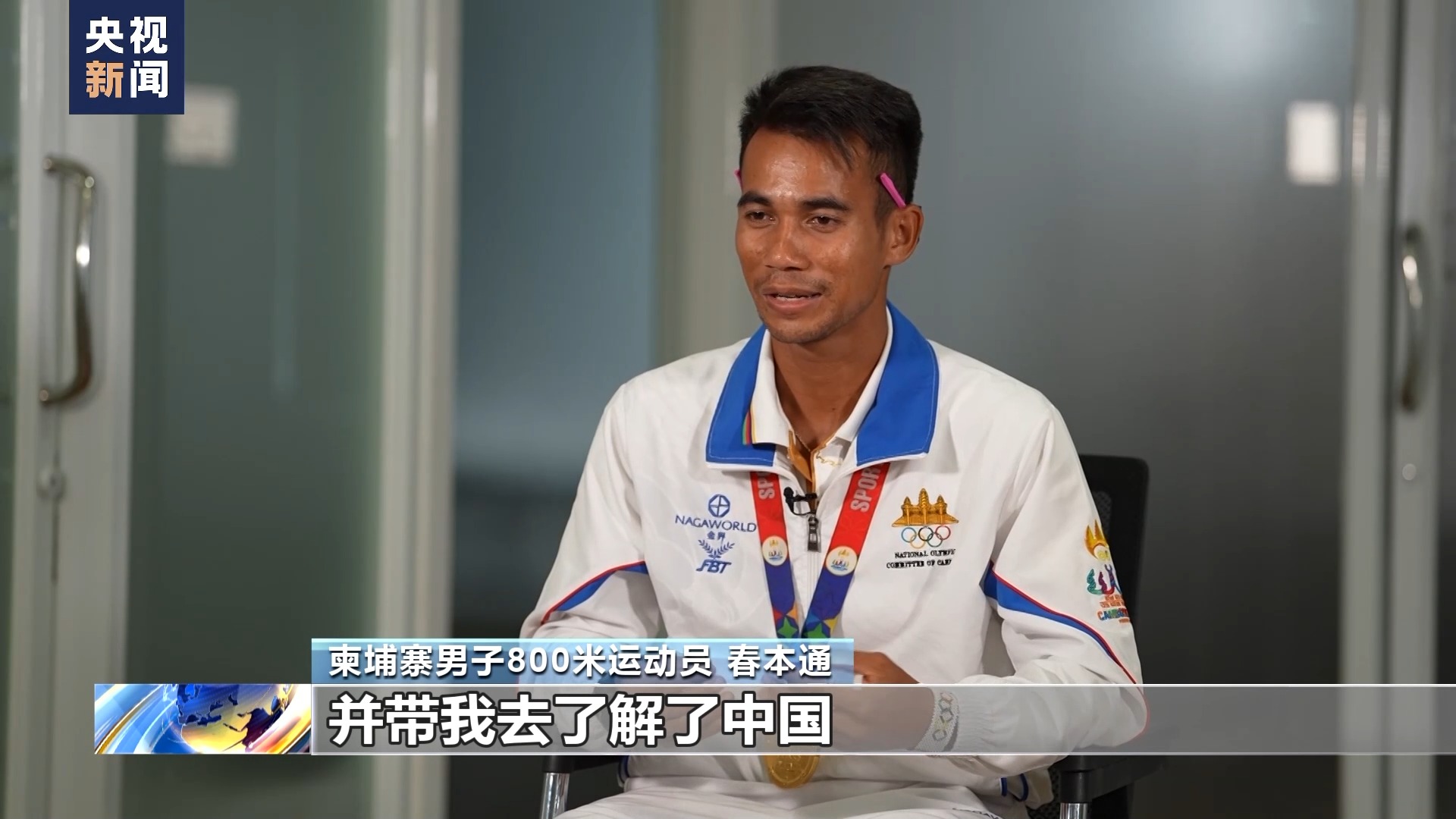 柬埔寨男子800米运动员 春本通:我非常感谢中国给我们安排了很好的教练、住宿、饮食等,并带我去了解了中国,了解中国的发展、体育和文明。关于即将到来的杭州亚运会,我会努力训练,竭尽所能。