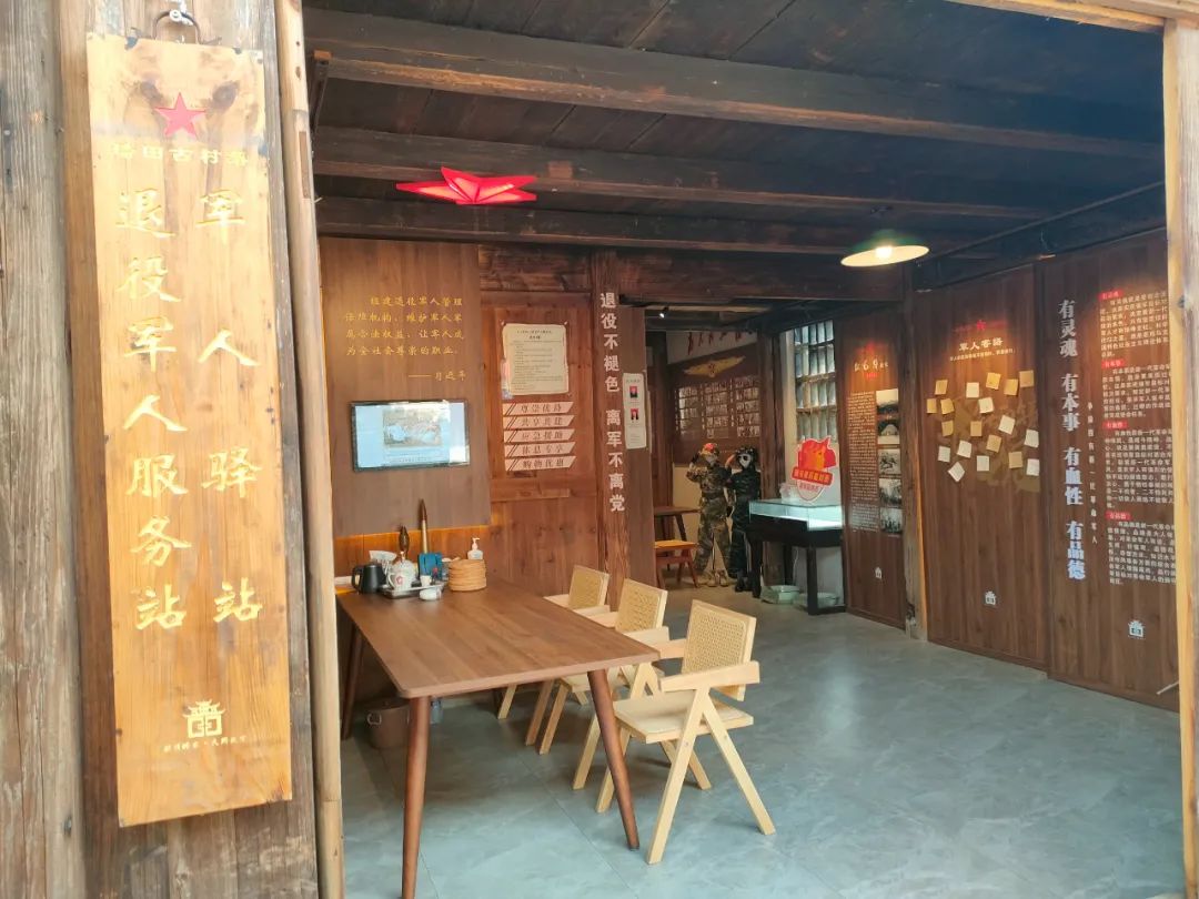 有八百多年历史的培田村,被誉为“民间故宫”“中国十大最美村镇”之一,是当年红军驻扎地之一的红色古村落,也是国家4A级景区。2023年,连城县退役军人事务局联合宣和镇,充分发挥培田红色古村的特色,在该村千米古街创建集应急援助、休闲娱乐、优先优待等功能于一体特色军人驿站(退役军人服务站)。驿站设置人民军队无尚光荣、“四有”军人、军人寄语、松毛岭战役等红色文化宣传阵地,成立退役军人思想政治教育实践基地,开展“老兵面对面”退役军人宣讲活动等;设立军人读书角,专门收集存放《古田军号》《绝境铸剑》等军队、军事题材的红色书籍和影视作品;设立军人休憩区,宣传优先优待服务政策、项目等。